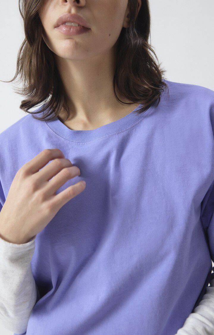 Het Fizvalley T-shirt voor dames is een must-have uit de collecties van American Vintage. De rechte, iets ruime pasvorm, gecombineerd met een ronde hals en korte mouwen, geeft het een authentieke en tijdloze uitstraling. Het is gemaakt van dik, glad en compact jersey en voelt gestructureerd aan met een uitgesproken vintage look. Dit T-shirt is verkrijgbaar in een breed kleurenpalet en kan zowel alleen als onder een overhemd of sweater worden gedragen, ongeacht het seizoen.
