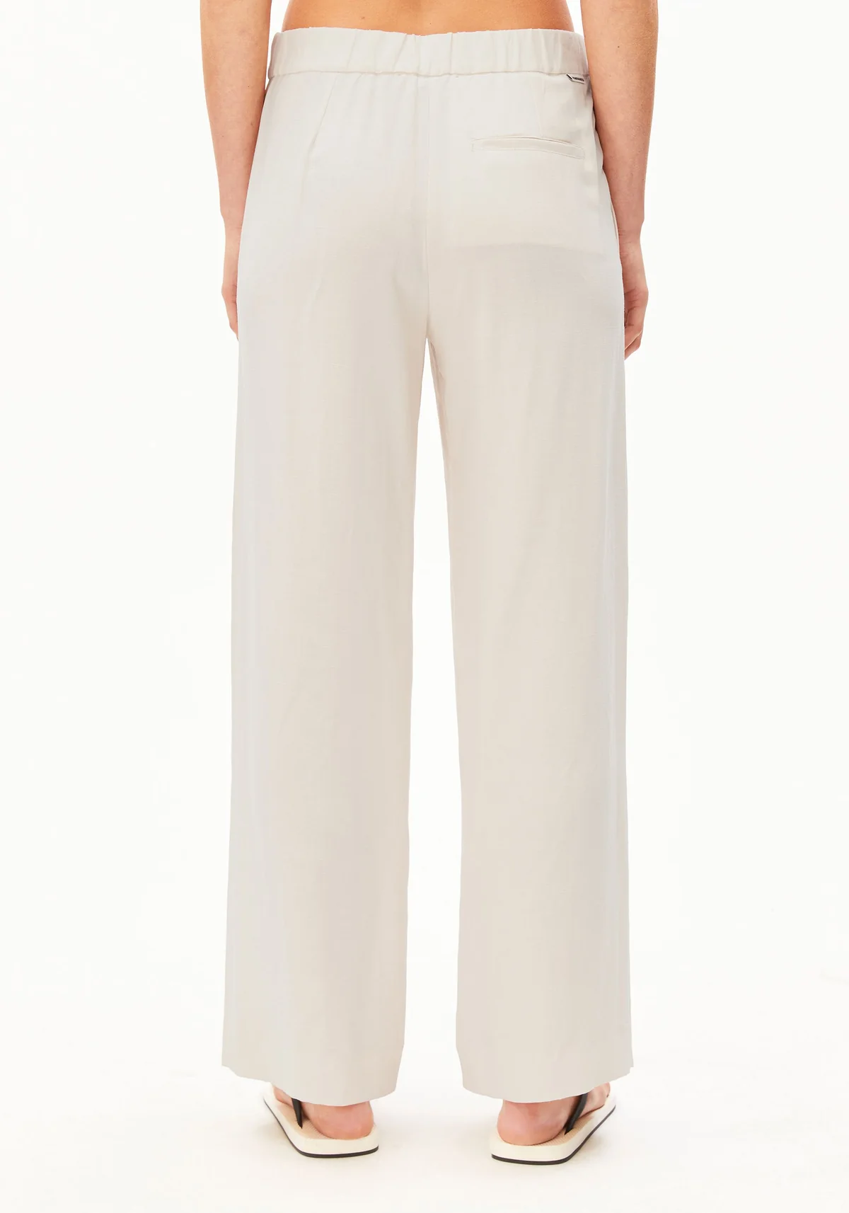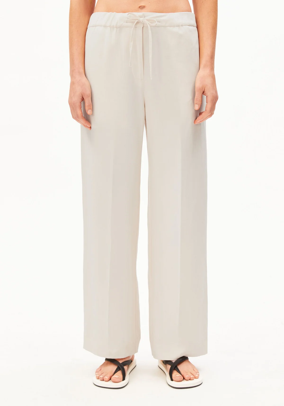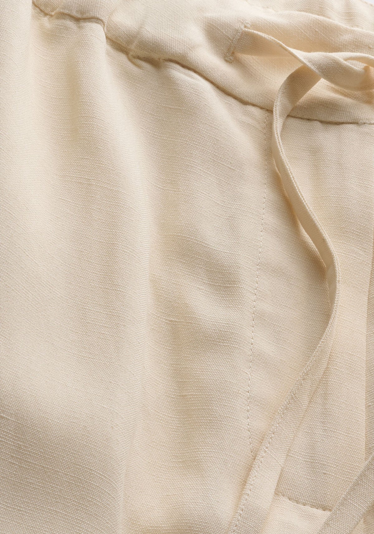 De broek met halfhoge taille en rechte pijpen heeft een ontspannen silhouet. De luchtige, soepelvallende mix van LENZINGâ„¢ ECOVEROâ„¢ viscose en linnen voelt zacht aan. Steekzakken opzij en een strikceintuur bij de tailleband vullen de functionele afwerking aan.