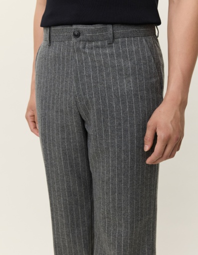 Relaxte pasvorm met een subtiele textuur. Deze pantalon uit onze Como-serie is gemaakt van een moulinéwolmix met een subtiele krijtstreep en een losse, wijde pijp voor optimale bewegingsvrijheid.