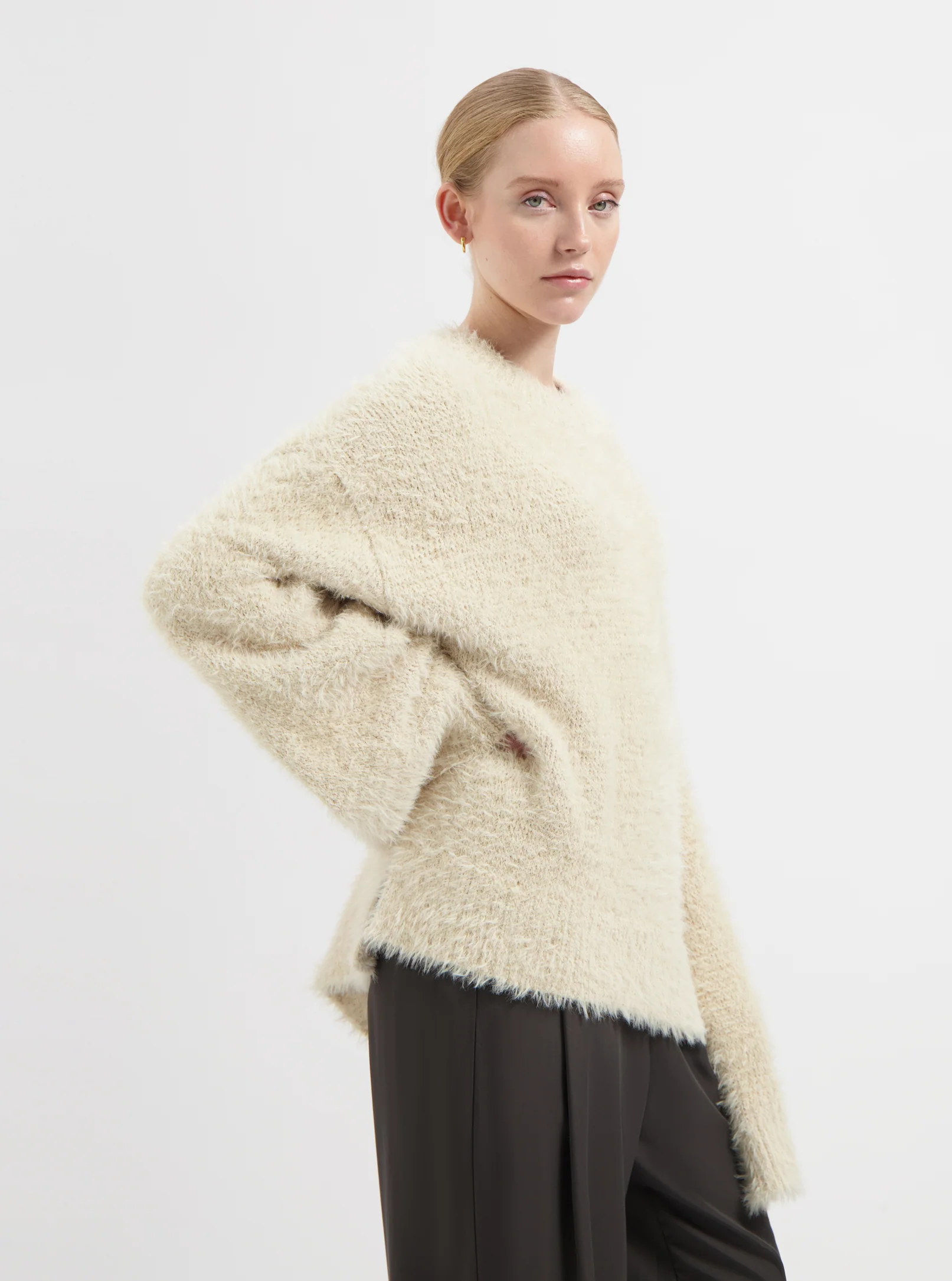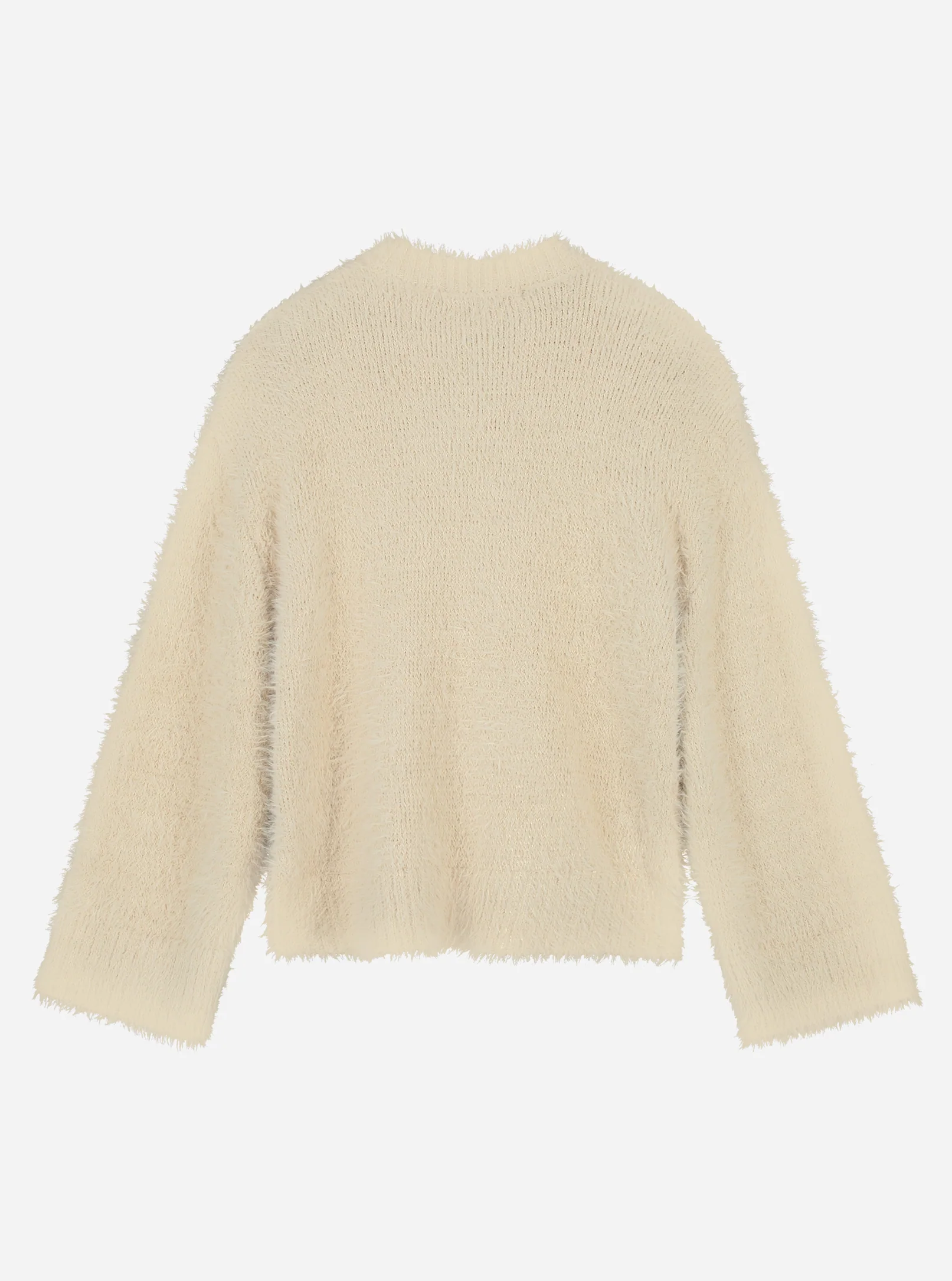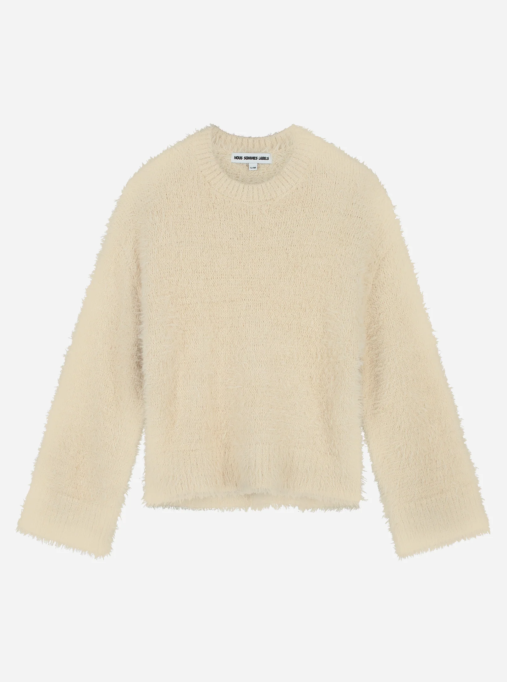 Deze zandkleurige rondehals is gemaakt van een pluizige polyester-acryl mix, die een warme en extreem zachte textuur biedt. Dankzij de ontspannen pasvorm is hij perfect voor moeiteloos dagelijks gebruik.