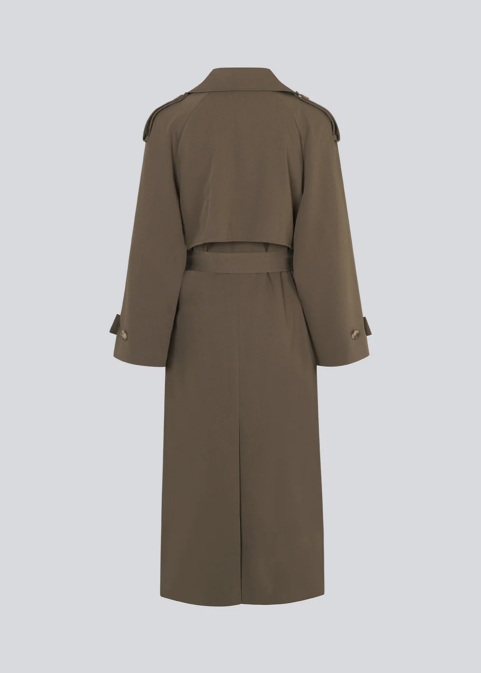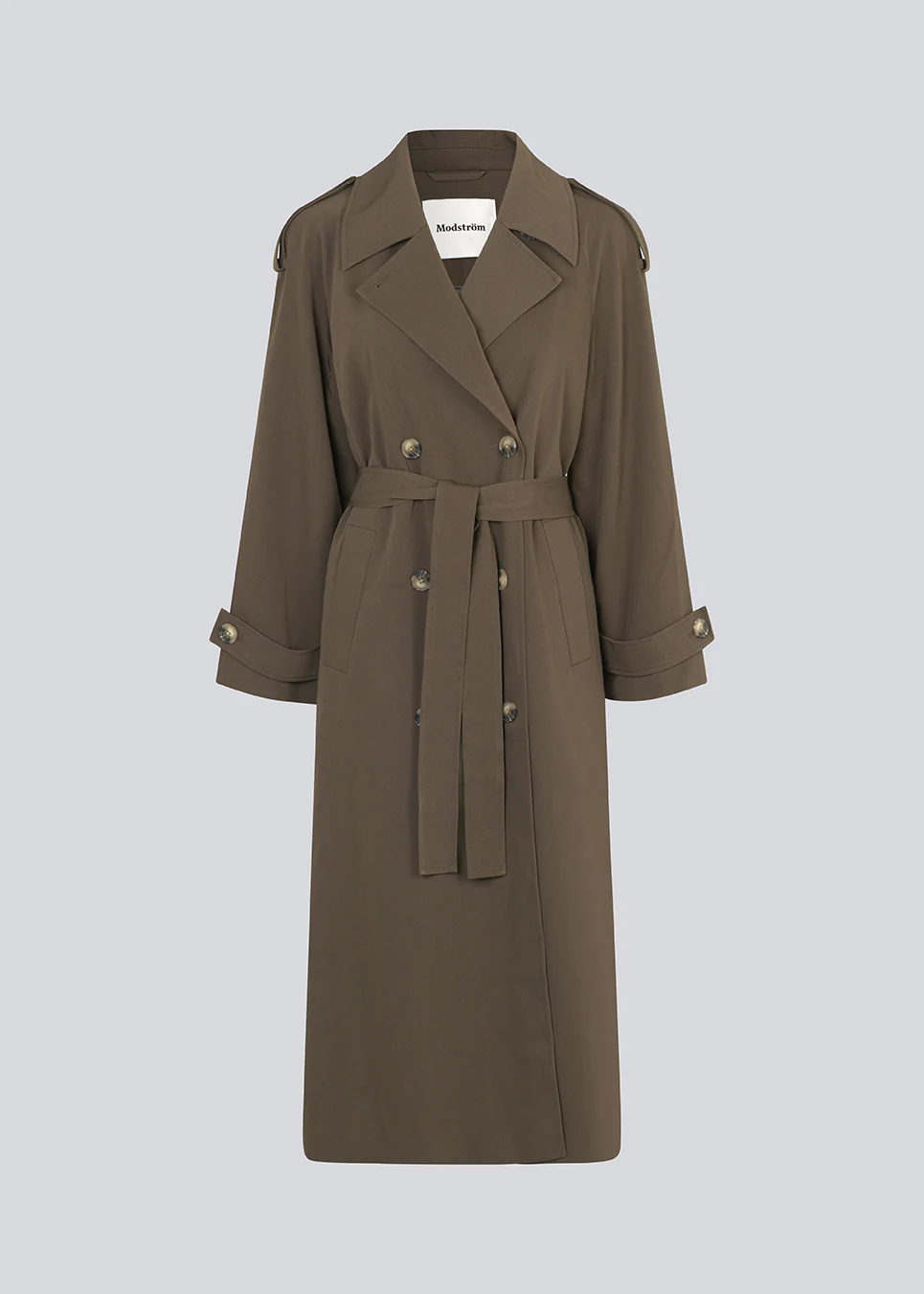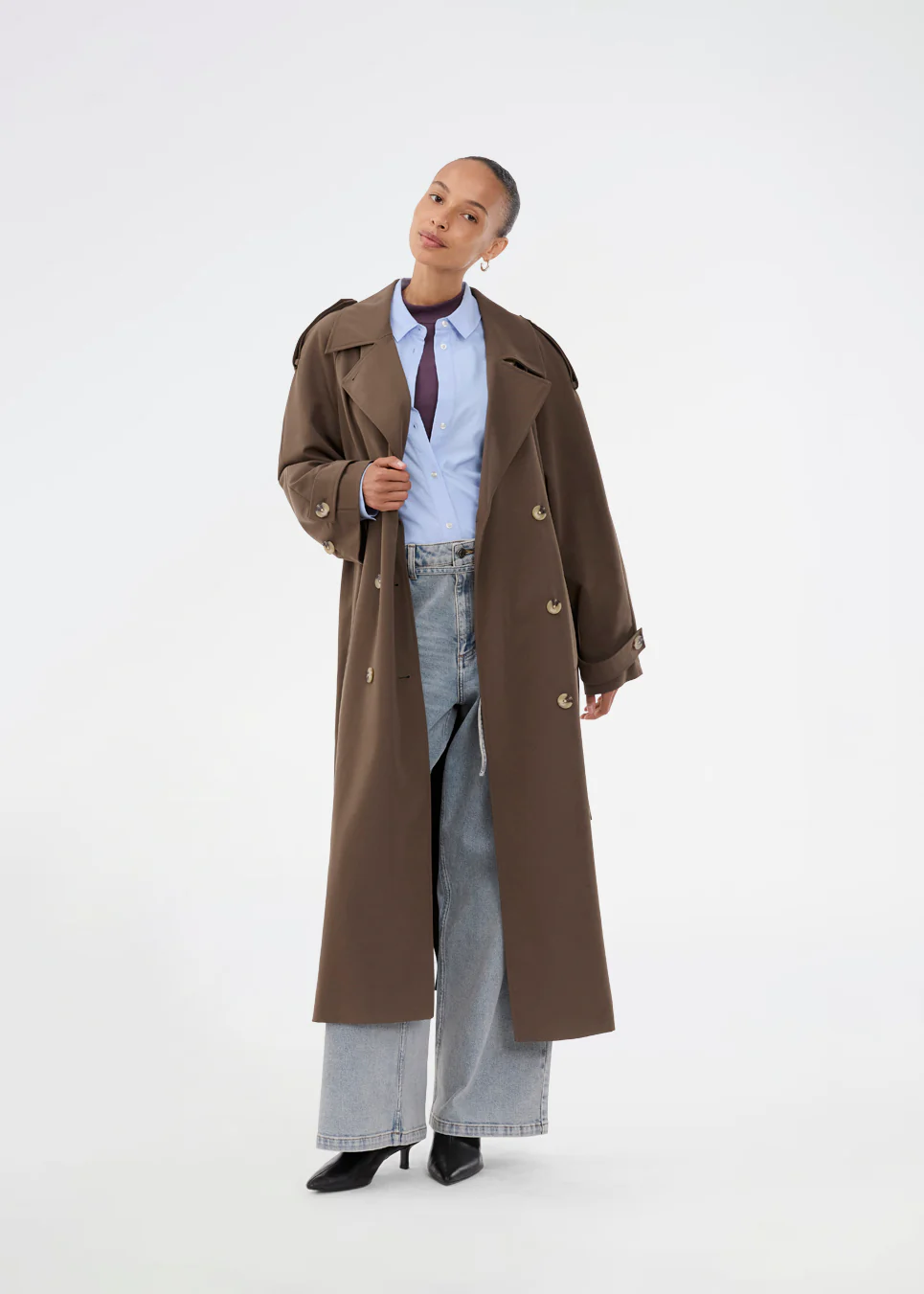 Oversized double-breasted trenchcoat in donkerbruin met ceintuur in de taille. De EvieMD-jas heeft verlaagde schouders en lange, brede mouwen. Gevoerd.