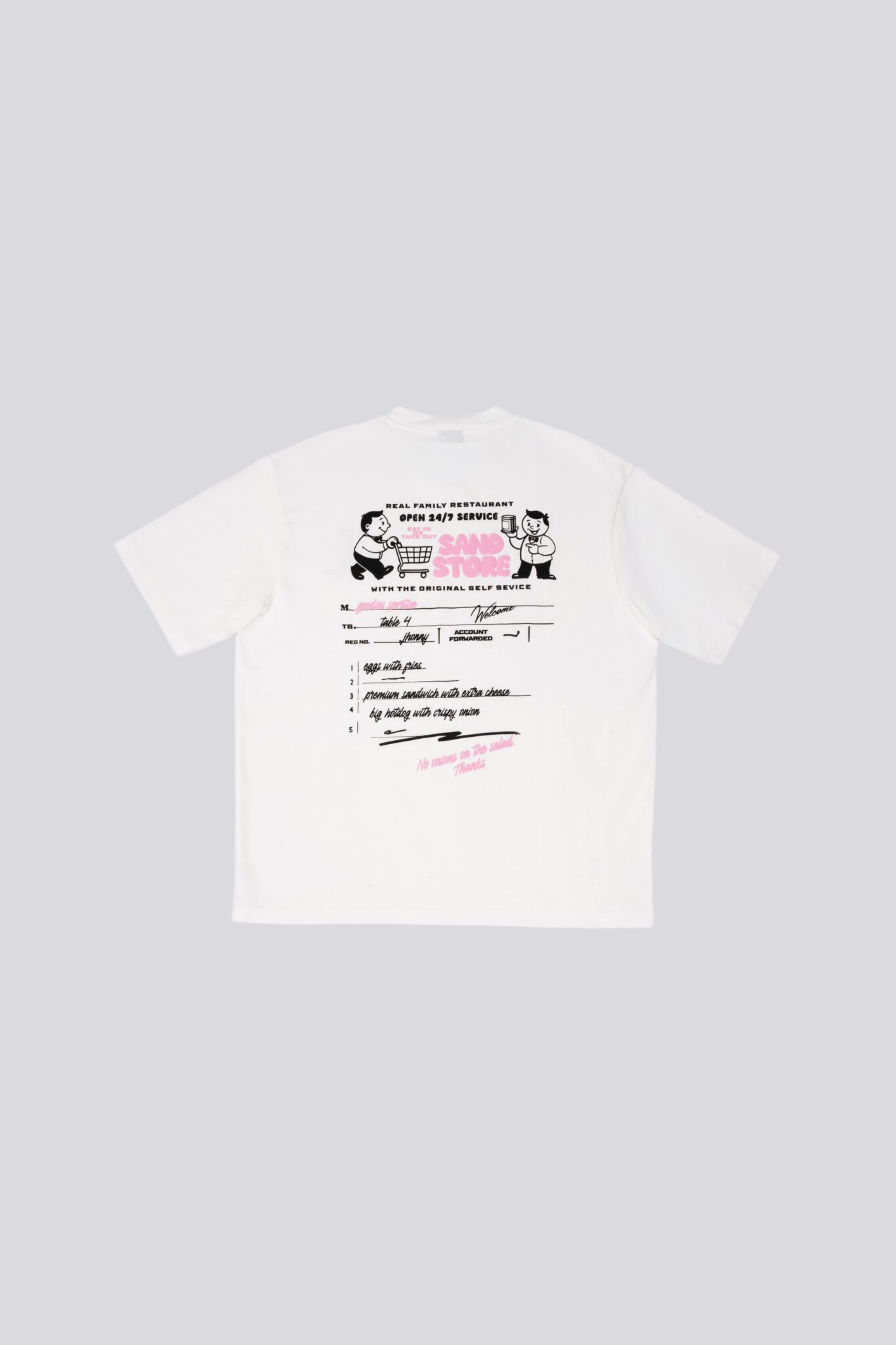 Wit katoenen T-shirt mey opdruk op linkerborst en middenrug.