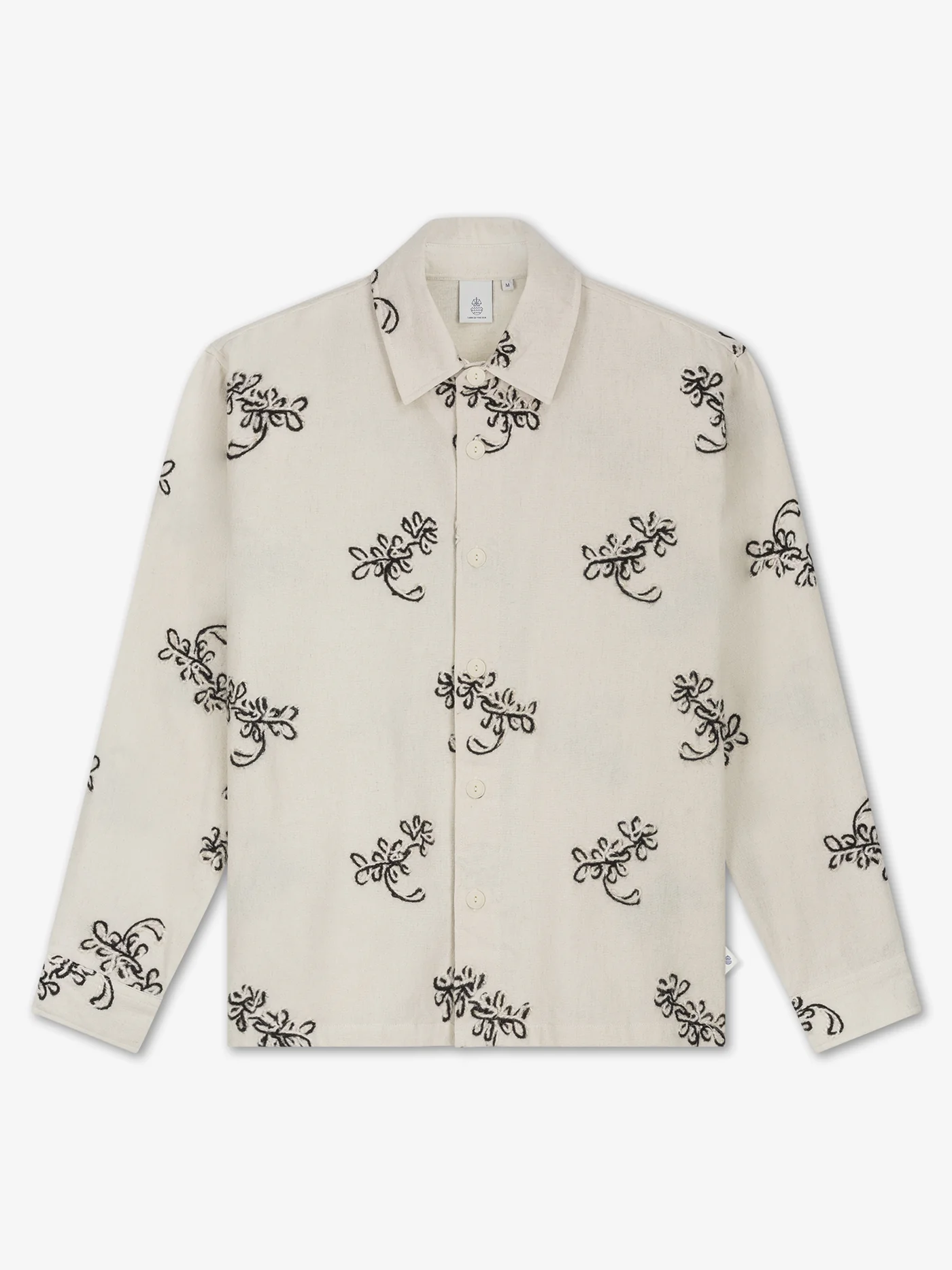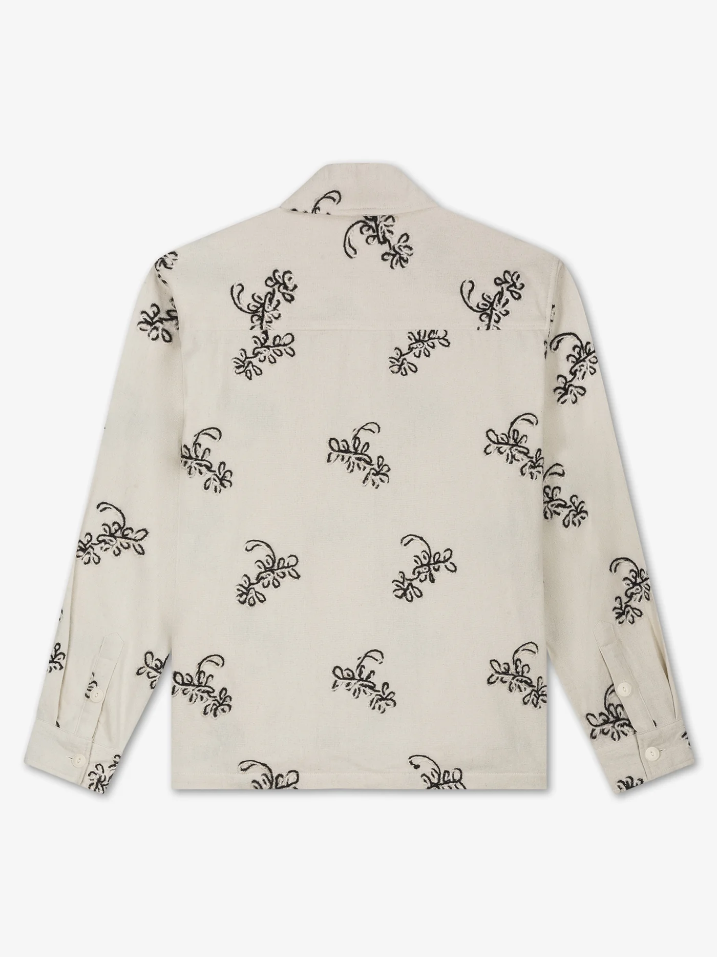Een overhemd met een al over geborduurde figuren.