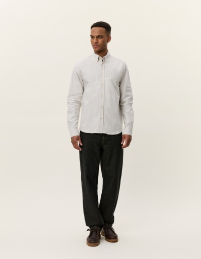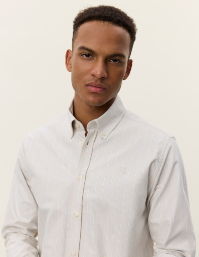 Een casual Oxford-overhemd met een tijdloos gestreept patroon, gemaakt van katoen met een vleugje stretch voor bewegingsvrijheid. Ontworpen met een button-down kraag, volledige knopenlijst, afgeronde zoom en een rugpand voor een strakke en gestructureerde uitstraling, afgewerkt met tonale borduursels op de borst.