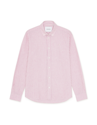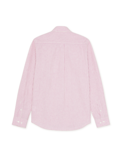 Een warm weervariant van onze Konrad-serie. Deze editie is gemaakt van een frisse katoen-linnenmix met een klassiek streeppatroon en een kleine tonale borstborduring.