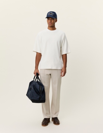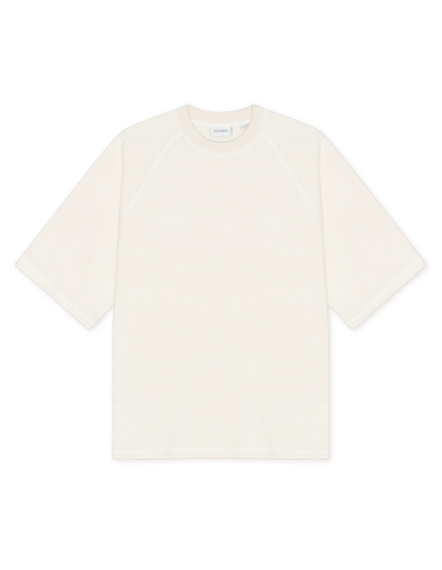Een losse heavyweight T-shirt gemaakt van zacht, handdoekachtig katoen. Ontworpen met raglanmouwen voor gemakkelijk bewegen en afgewerkt met subtiele tonale borduursels aan de achterzijde van de hals.