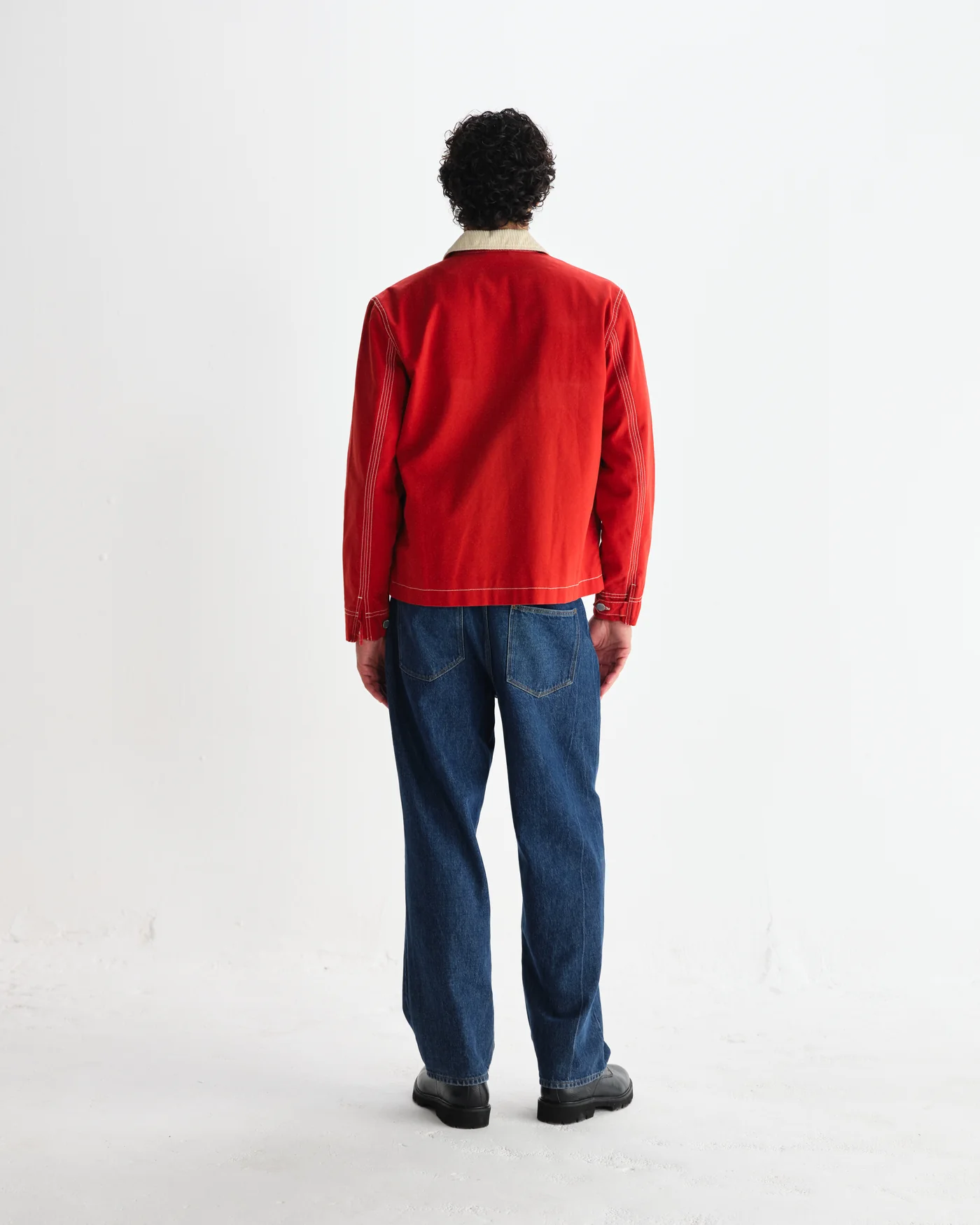 De Mason Jacket is een klassieke werkjas met een duurzame, geperforeerde katoenen canvasconstructie die robuustheid en dagelijks comfort biedt. De jas is volledig gevoerd en voorzien van denim knopen, klinknagels, een stevige tweewegrits en een contrasterende corduroy kraag voor een verfijnde afwerking.