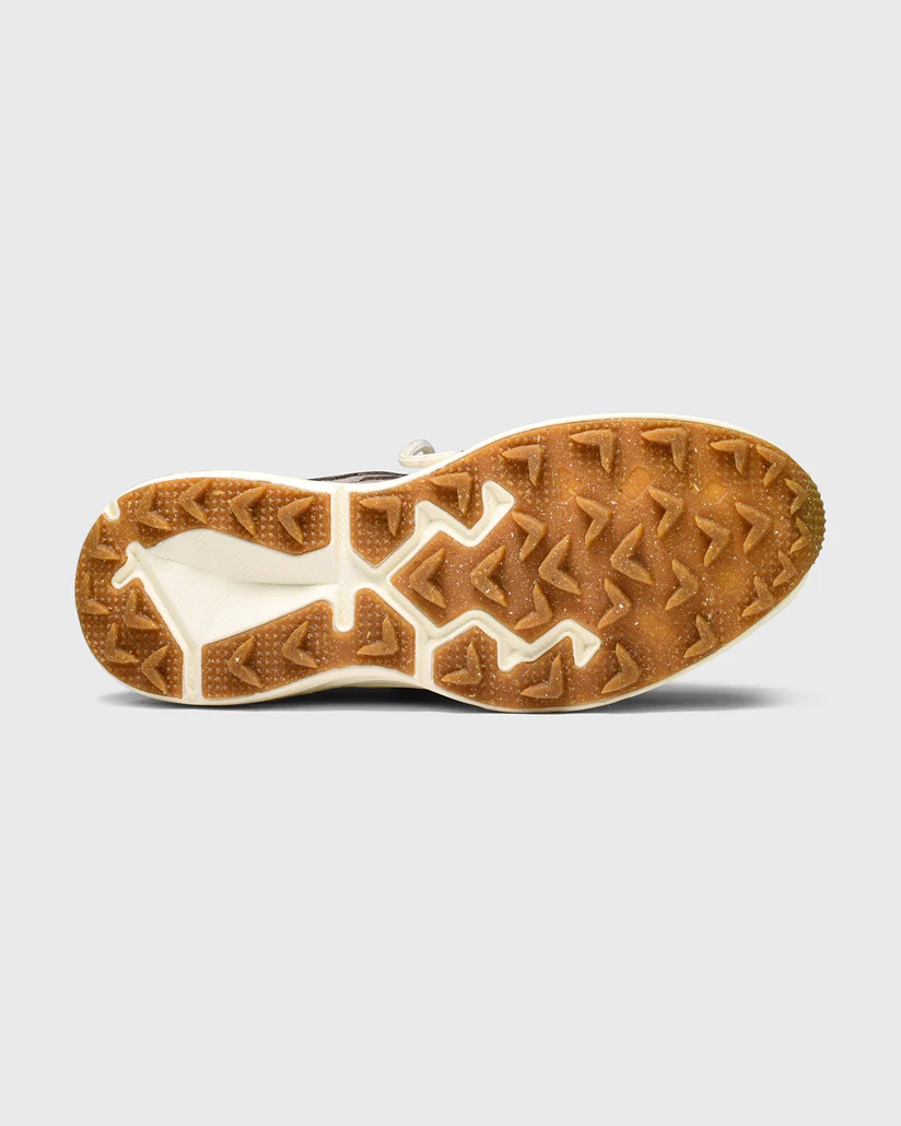 Soft suède over ademend mesh. Chunky zool, licht aan de voet. Een verfijnde interpretatie van een technisch design—easy, grounded en subtiel opvallend.