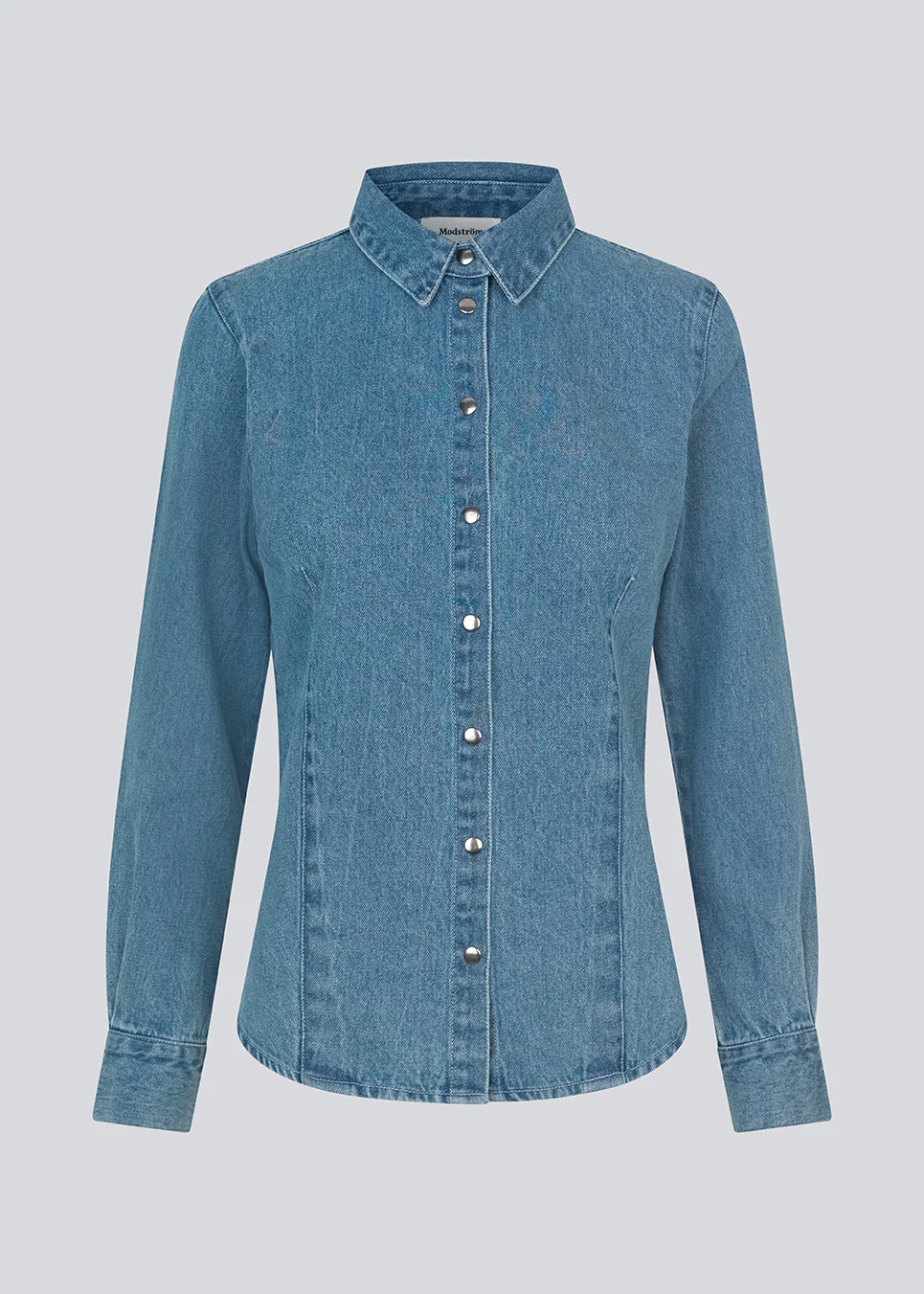 Zacht denimshirt van 100% katoenen denim. Het MinniMD-shirt is getailleerd en heeft een knoopsluiting en een overhemdkraag.
