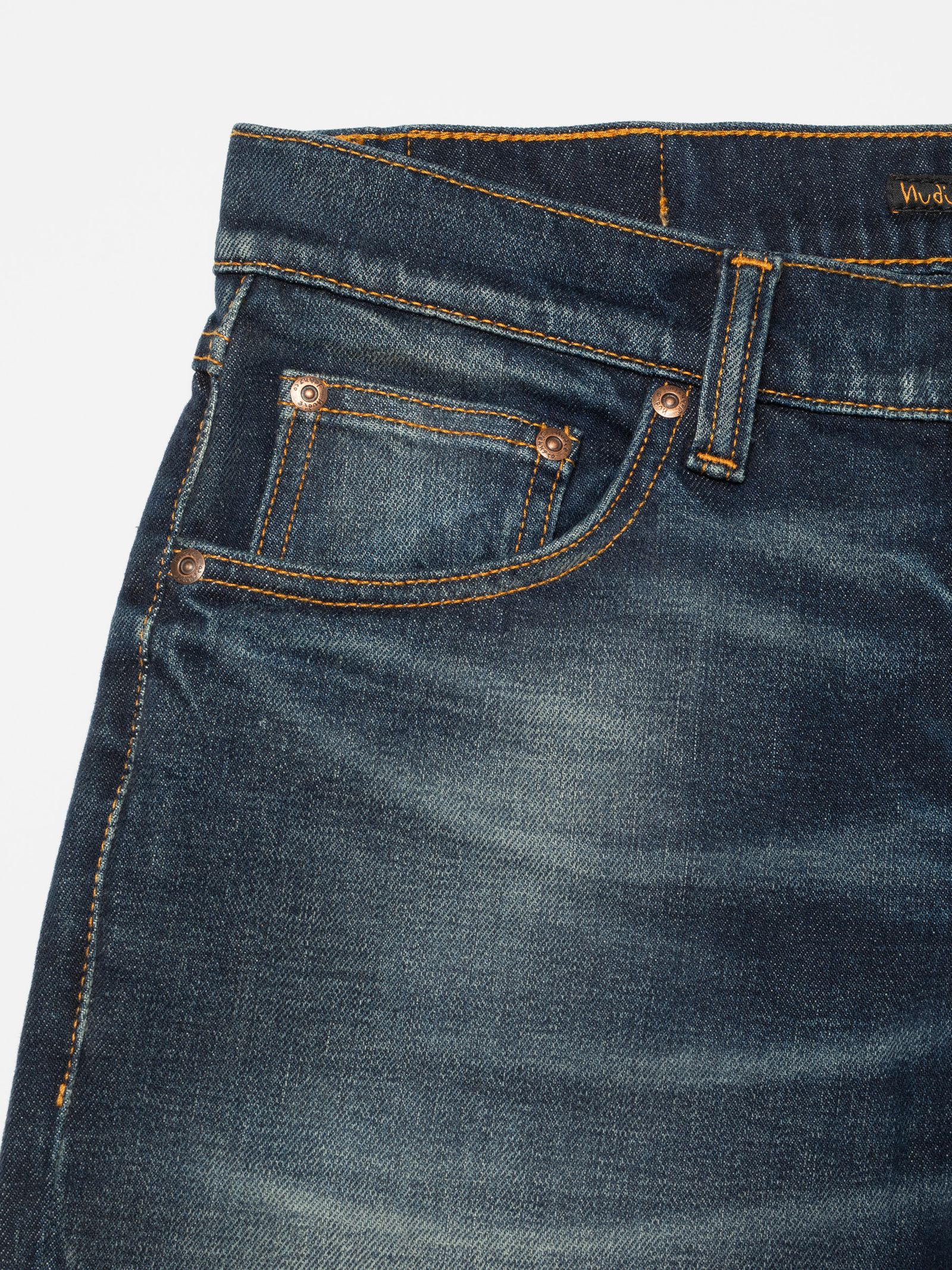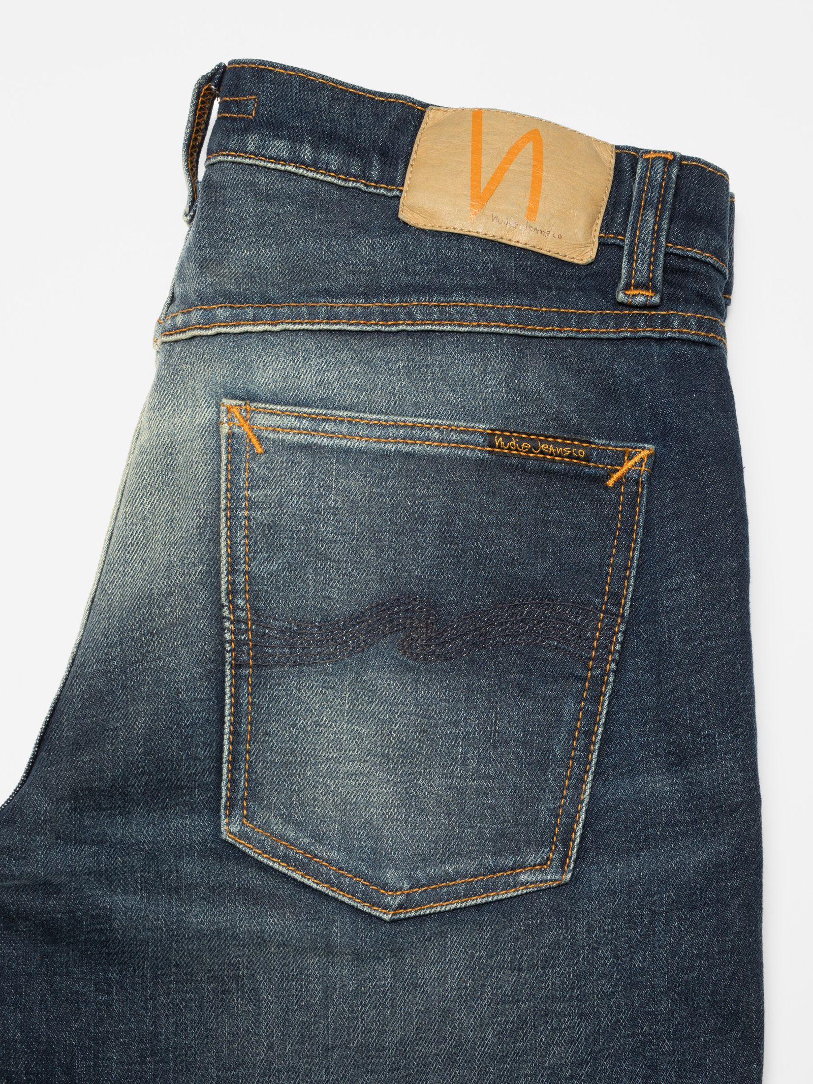 Regular jeans met rechte pijpen, uitgevoerd in de robuuste Lost Light wassing. Een donkere, groenachtige basis vormt het decor voor een intens contrast – waar diepe schaduwen scherpe highlights ontmoeten, waardoor elke slijtageplek en kras met brute helderheid zichtbaar wordt. Het resultaat is een wassing die zowel verweerd als onaangetast aanvoelt, ruw maar ingetogen. Lost Light vervaagt niet zomaar; het breekt, verschuift tussen diepte en slijtage op een manier die bijna onrustwekkend aanvoelt – op de best mogelijke manier.