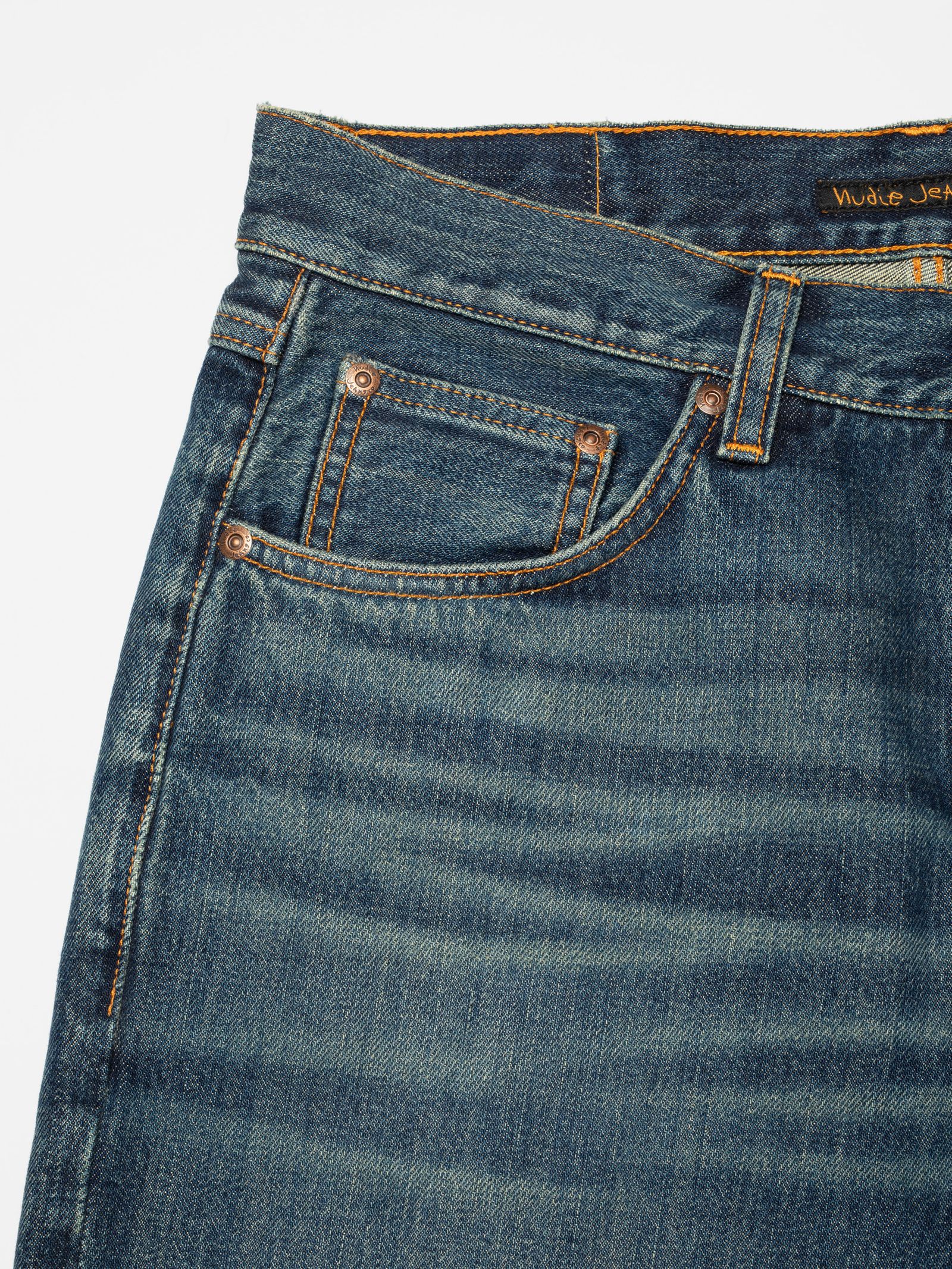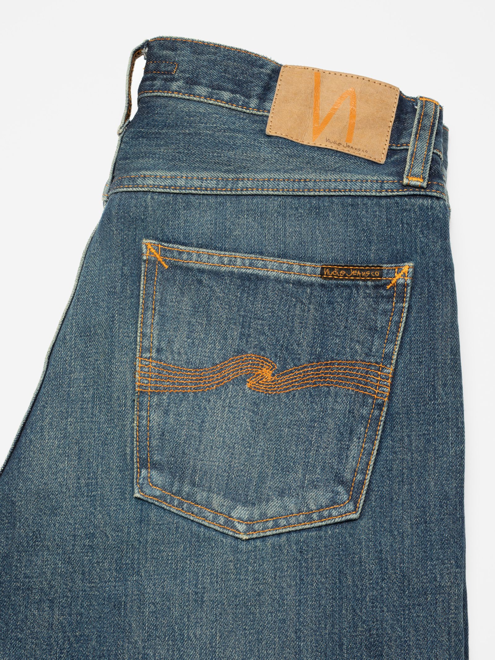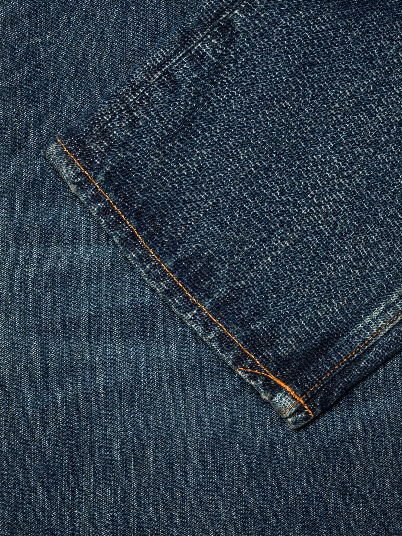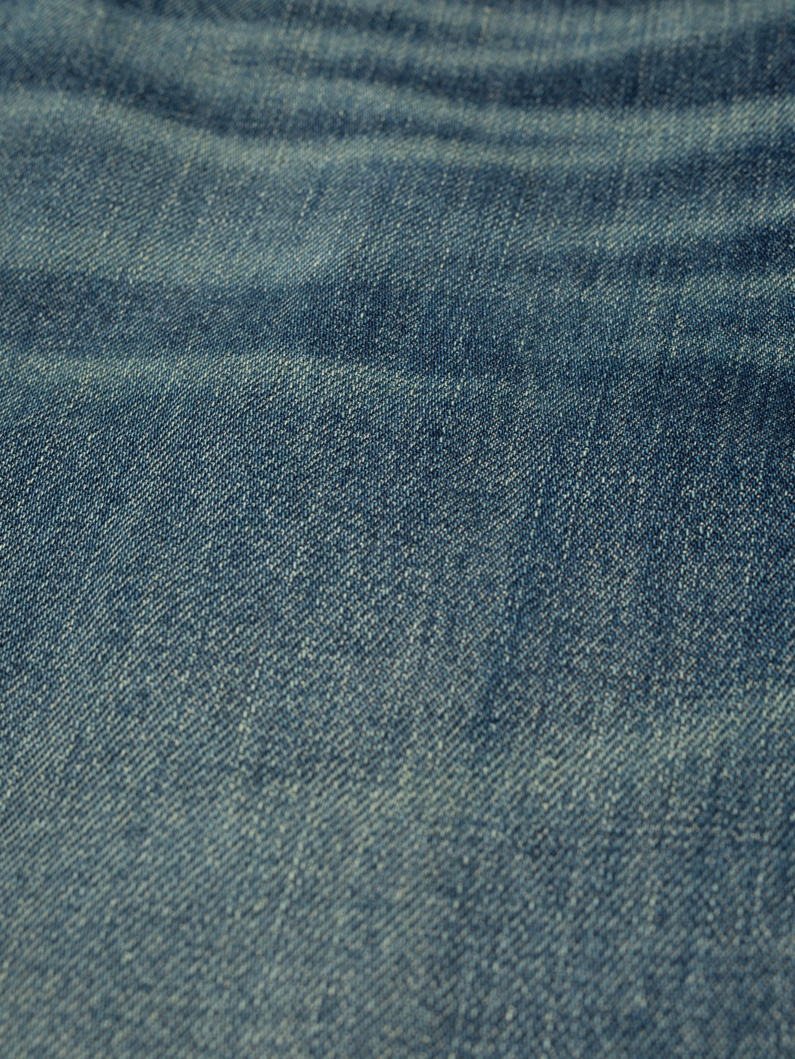 Een jeans met hoge taille en een normale pasvorm, uitgevoerd in de opvallende Sand Storm-wassing. Met een middendonkerblauwe basis, gecontrasteerd door sterke highlights en een groenachtig-grijze tint die een stormachtige, versleten waas creëert, brengt deze wassing de rijke textuur van de denim naar voren, met prachtige verticale onregelmatigheden en subtiele marmereffecten. Sand Storm is vervaagd, verweerd en zit boordevol karakter – vol gedurfde diepte en details.