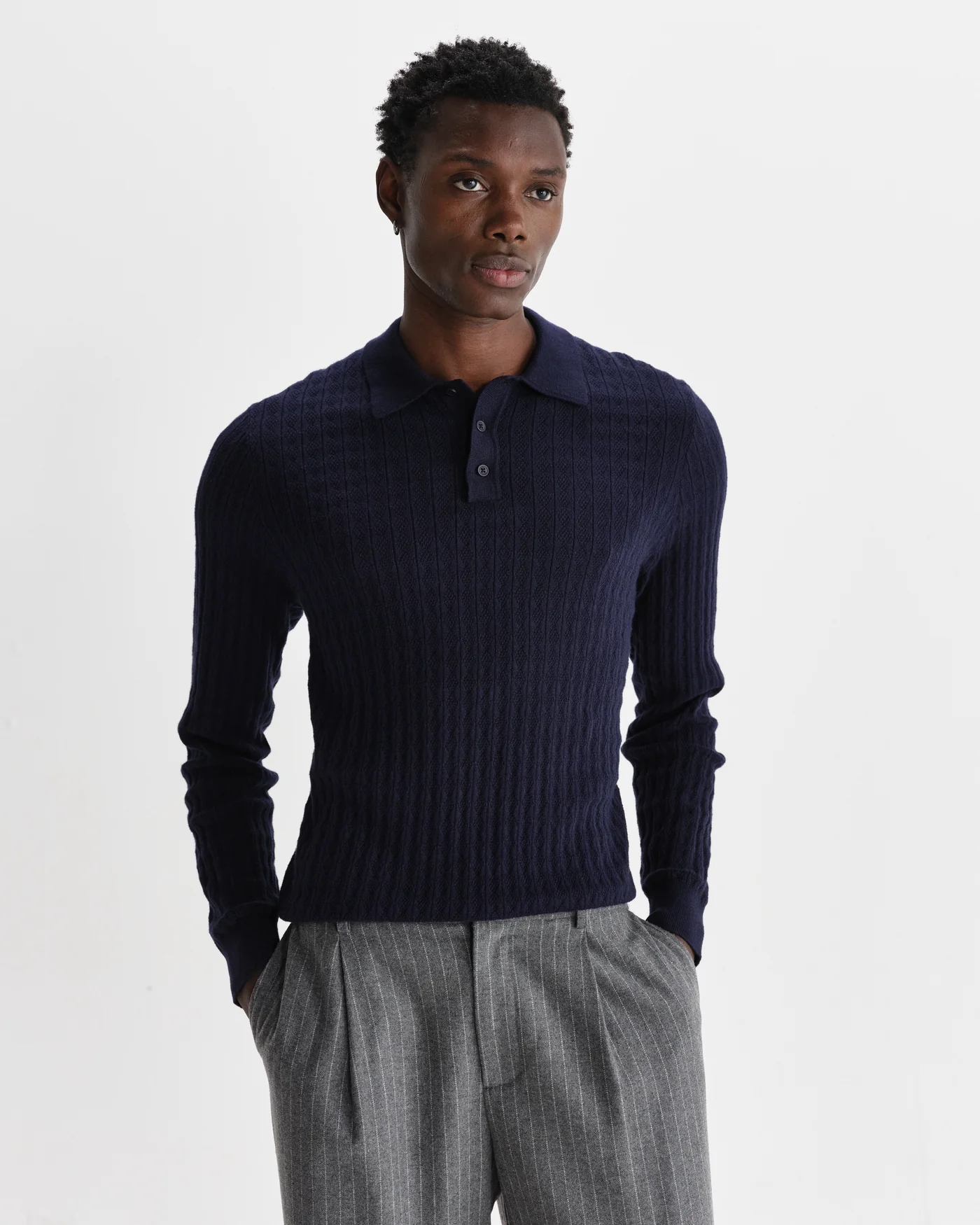 De Oban is een verfijnde basic voor elke gelegenheid. Hij heeft een normale, klassieke pasvorm en is gemaakt van een katoen-kasjmiermix voor een zacht, warm en luxueus gevoel. Met een verfijnde ruitvormige breisel in een strakke marineblauwe kleurstelling is hij gemakkelijk de hele dag te dragen en een stijlvolle optie voor avondlooks.