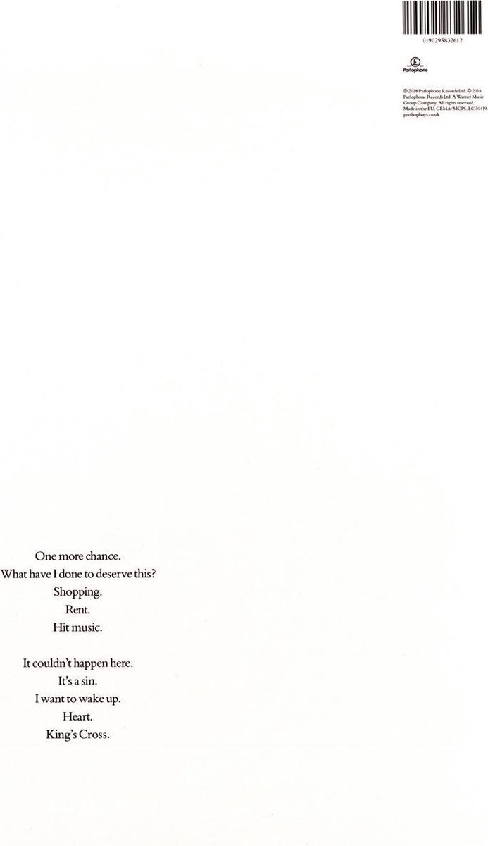 Actually van Pet Shop Boys, met release datum 1 maart 2018, bevat de volgende nummers: “Shopping”, “Hit Music”, “It’s A Sin”, “Heart” en meer.Deze versie van Actually verschijnt als een 1xLP.Het product bevat een ondoorzichtig vinyl.