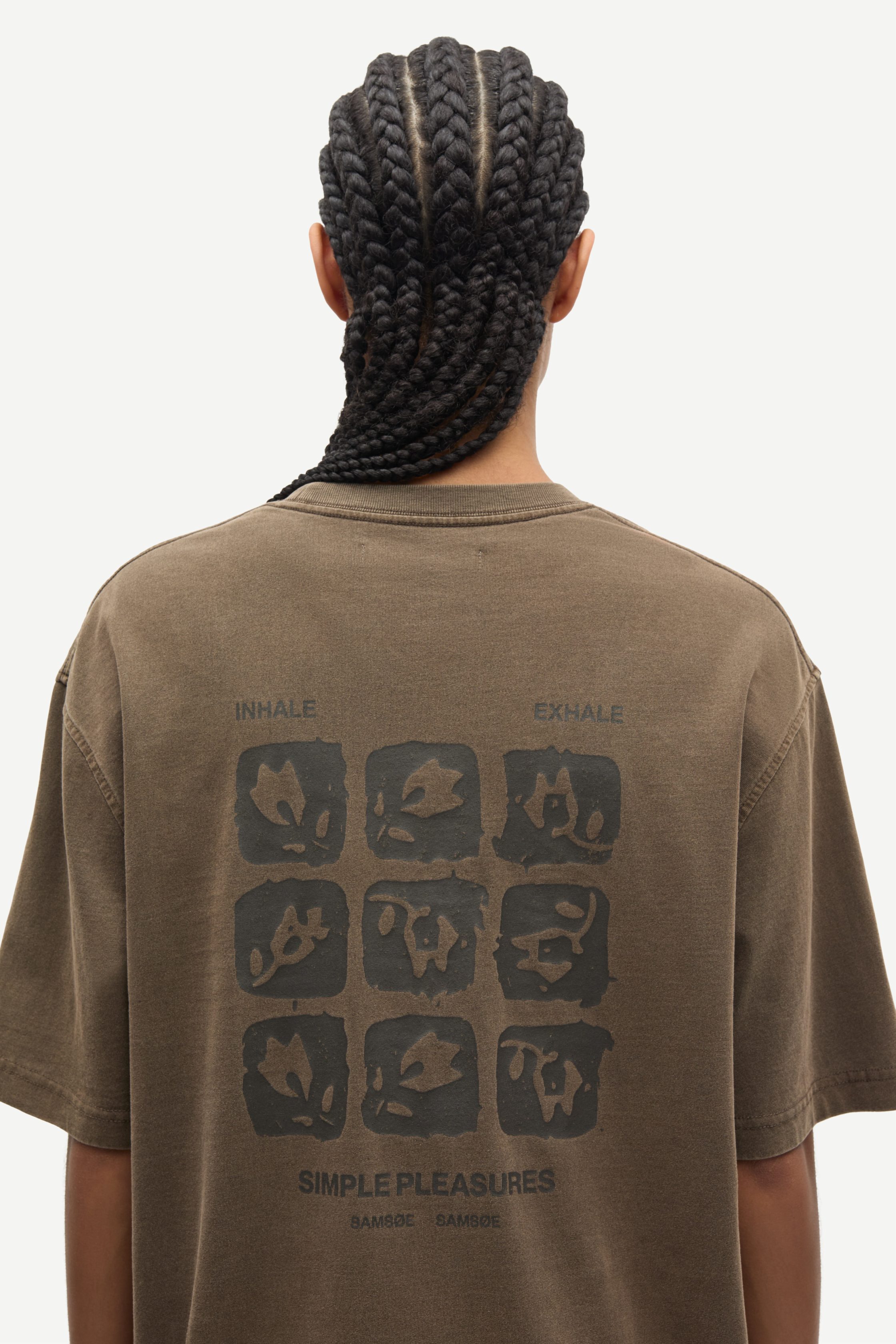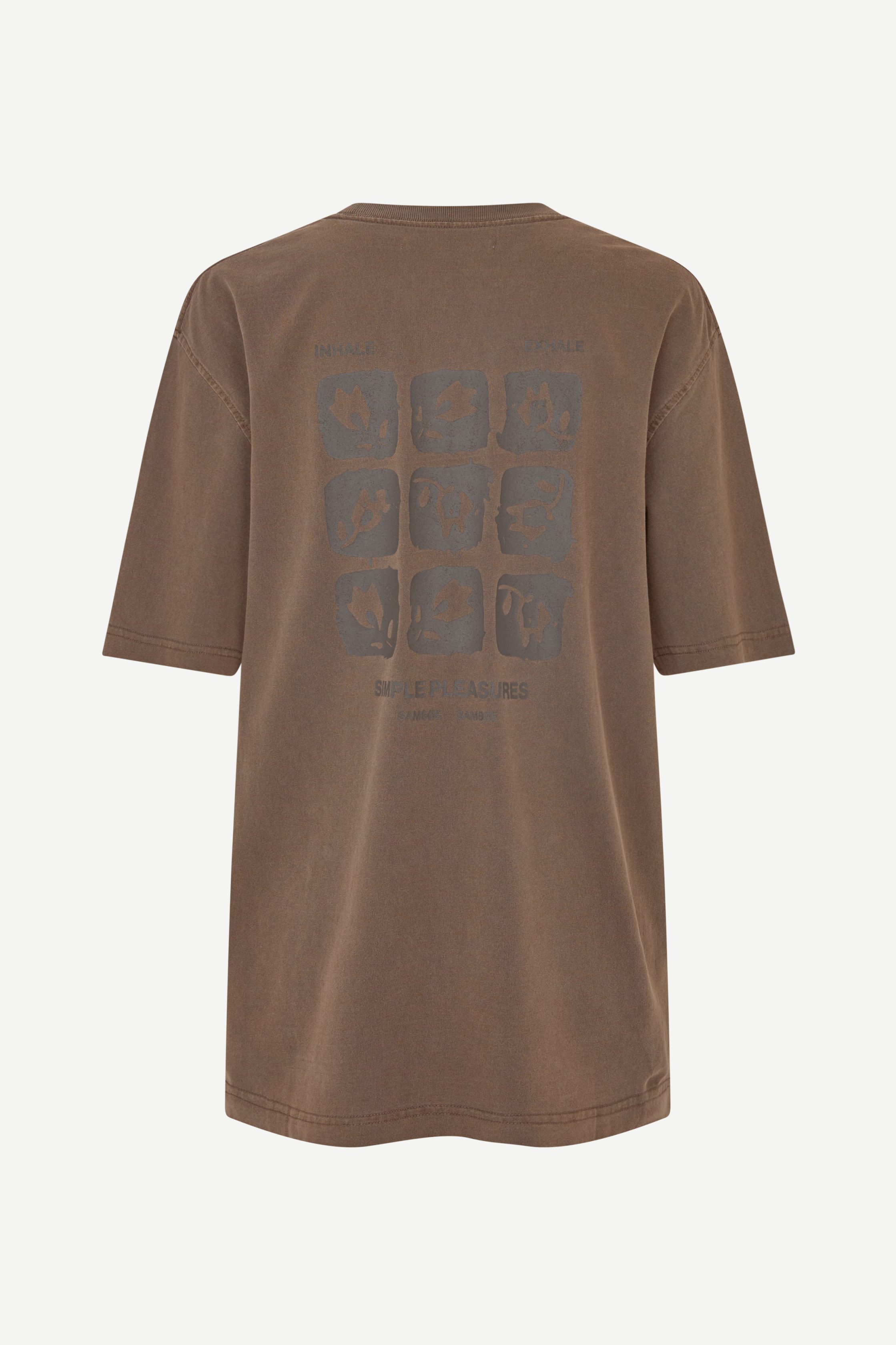 T-shirt met korte mouwen in een oversized pasvorm en verzonken schouders. Ribgebreide ronde hals. Grafische print met Samsøe Samsøe-logo. Gewassen look. Hoofdmateriaal gemaakt van 100% biologisch katoen.