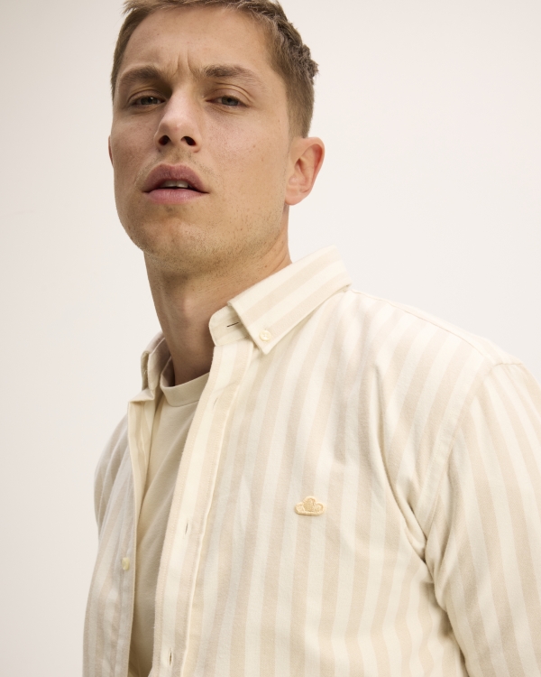 Stijl Seinfeld is een onmisbaar kledingstuk, ons bestverkochte overhemd. Een gestreepte stof met onze iconische wolkenpatch op de borst. Dit model is gemaakt in Portugal.
