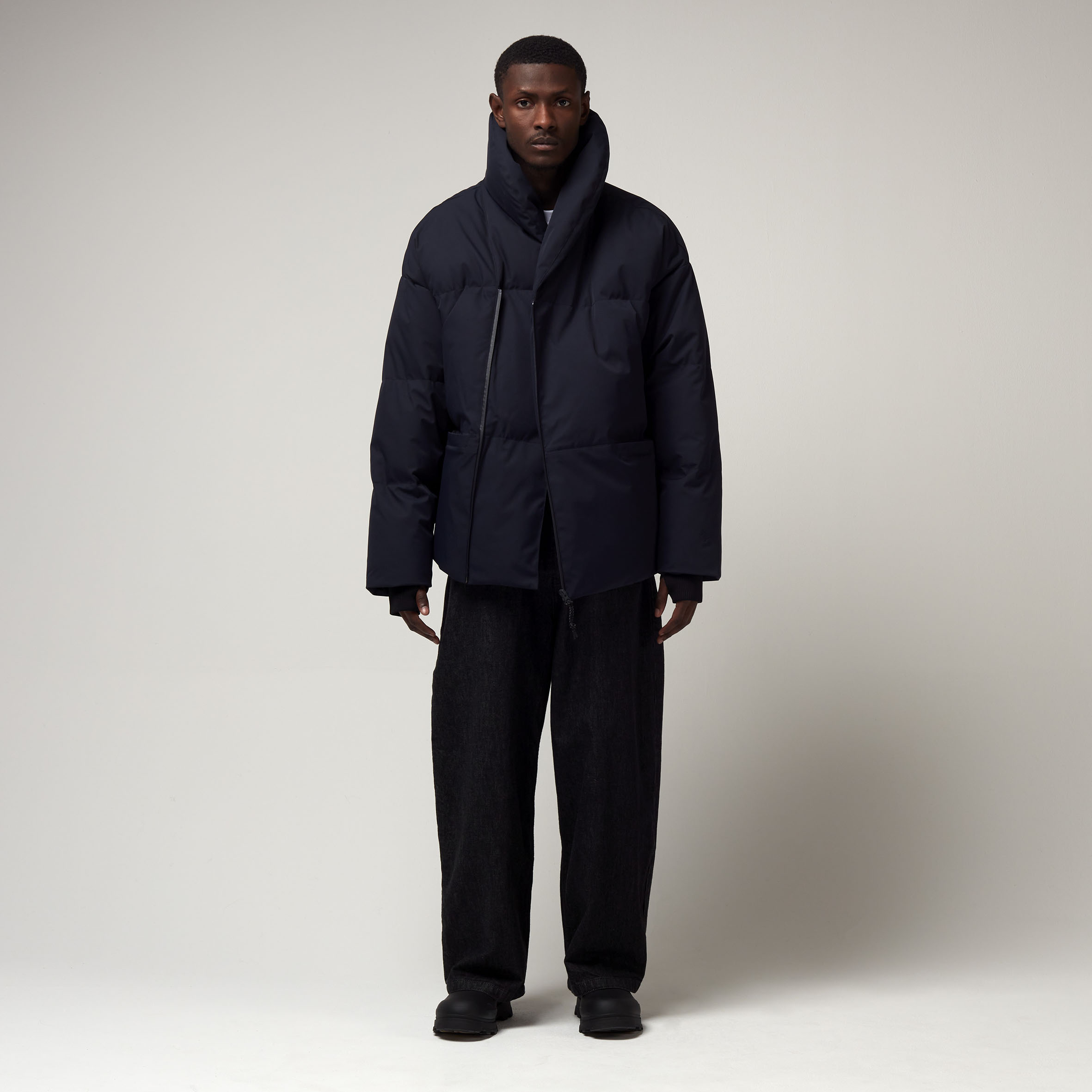 SOUTA is de perfecte gewatteerde jas om op te vallen. De losse pasvorm en hoge kraag zorgen niet alleen voor een koel silhouet, maar bieden ook warmte en bescherming op koudere dagen.